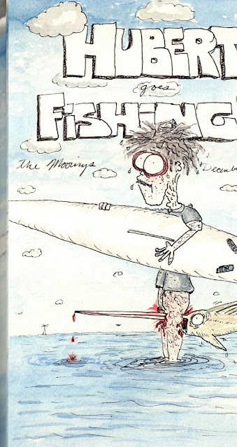 Hi Everybody. Can you believe it's December already. Time goes by when you're having so much fun! I'm kind of being sarcastic, anyway, hey, I was looking on my previous blog, and the last cartoon is a true story. I was in the Keys in Florida. I was shooting a photographic job in my favorite place in Islamorada. Anyway, I got done with my photographic shoot early. I had time to go for a quick windsurf. I was going to meet my friend Hubert in front of his house. Well when I got there to meet him, the manager of the resort told me Hubert was in the hospital. I rushed down there and they told me a damn fish went right through his leg. Talk about surf and turf! Anyway, I obviously didn't go windsurfing that day.